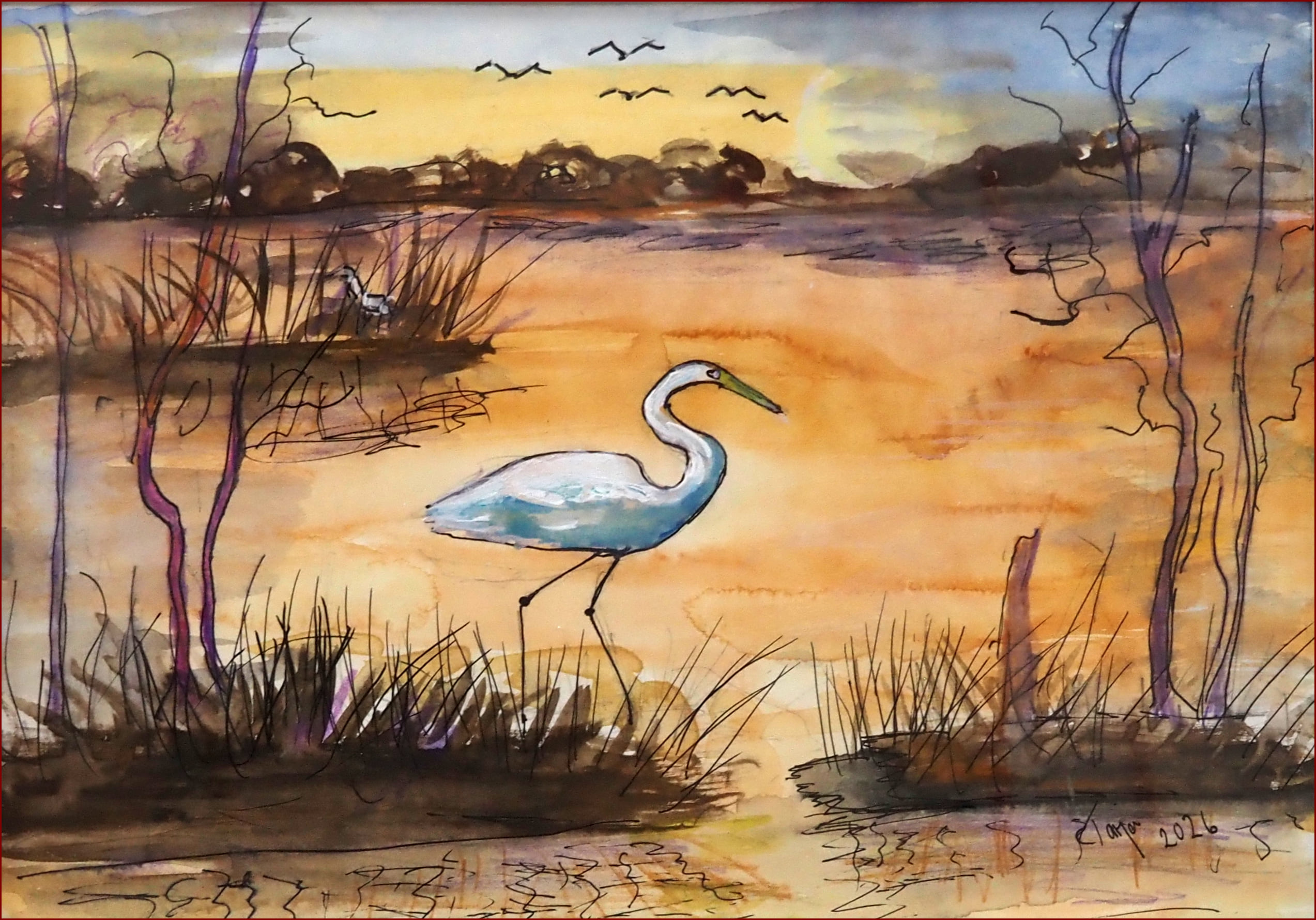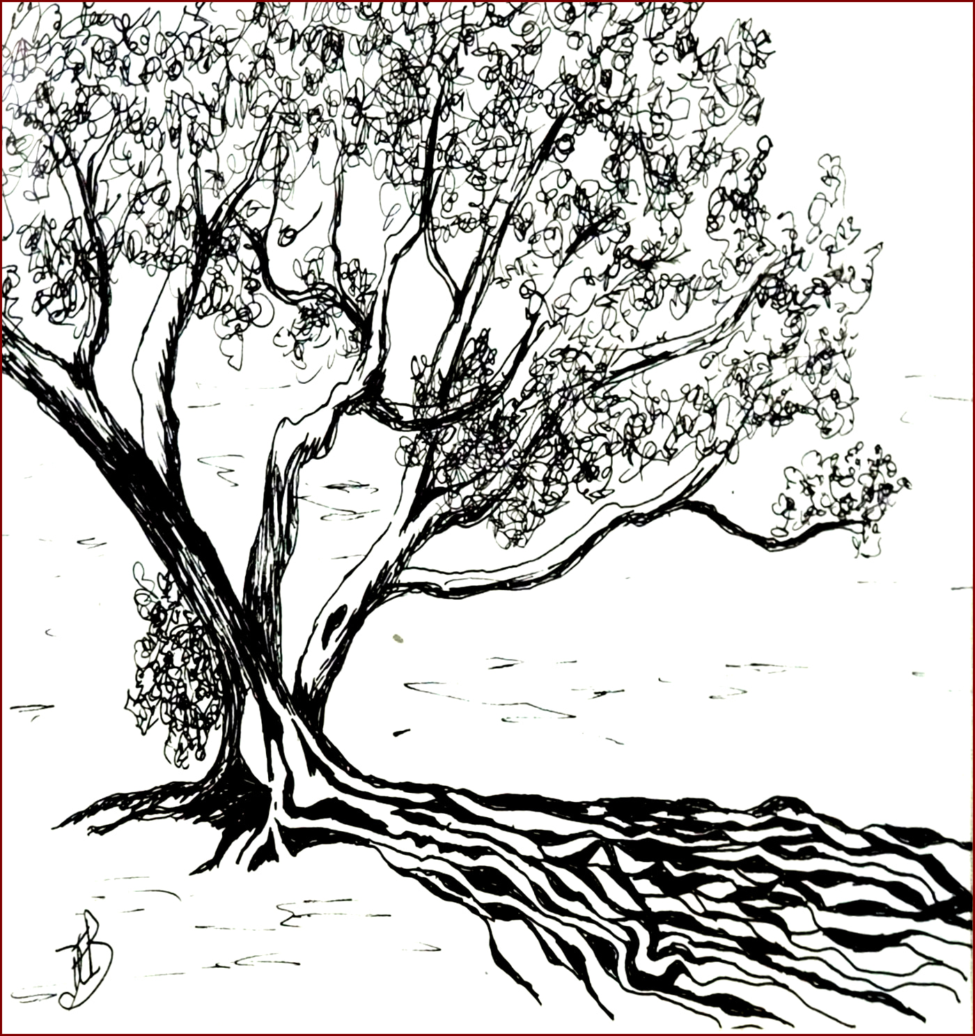 02 'Mangrove on the Bay' - Danielle Bain, Ink, 20x15cm, Framed, $40