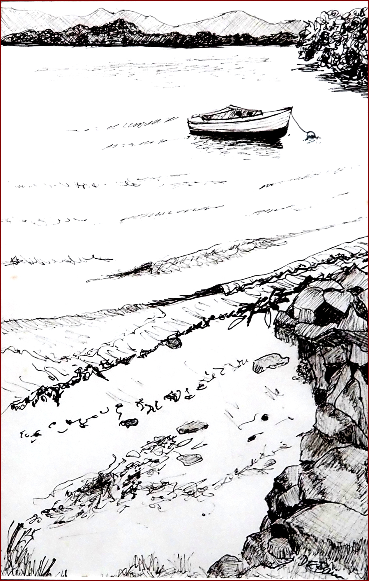04 'Point Talburpin' - Danielle Bain, Ink, 16x23cm, Framed, $90
