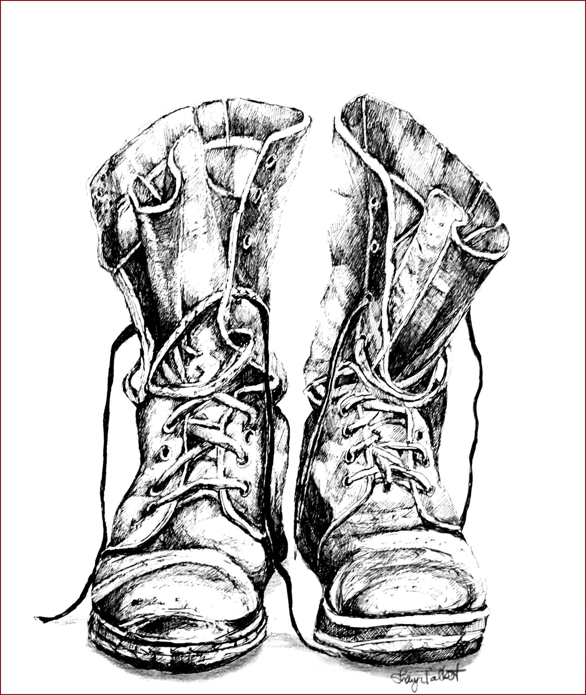 13 'Boots' - Sharyn Talbot, Ink, 26x30cm, Framed, $195