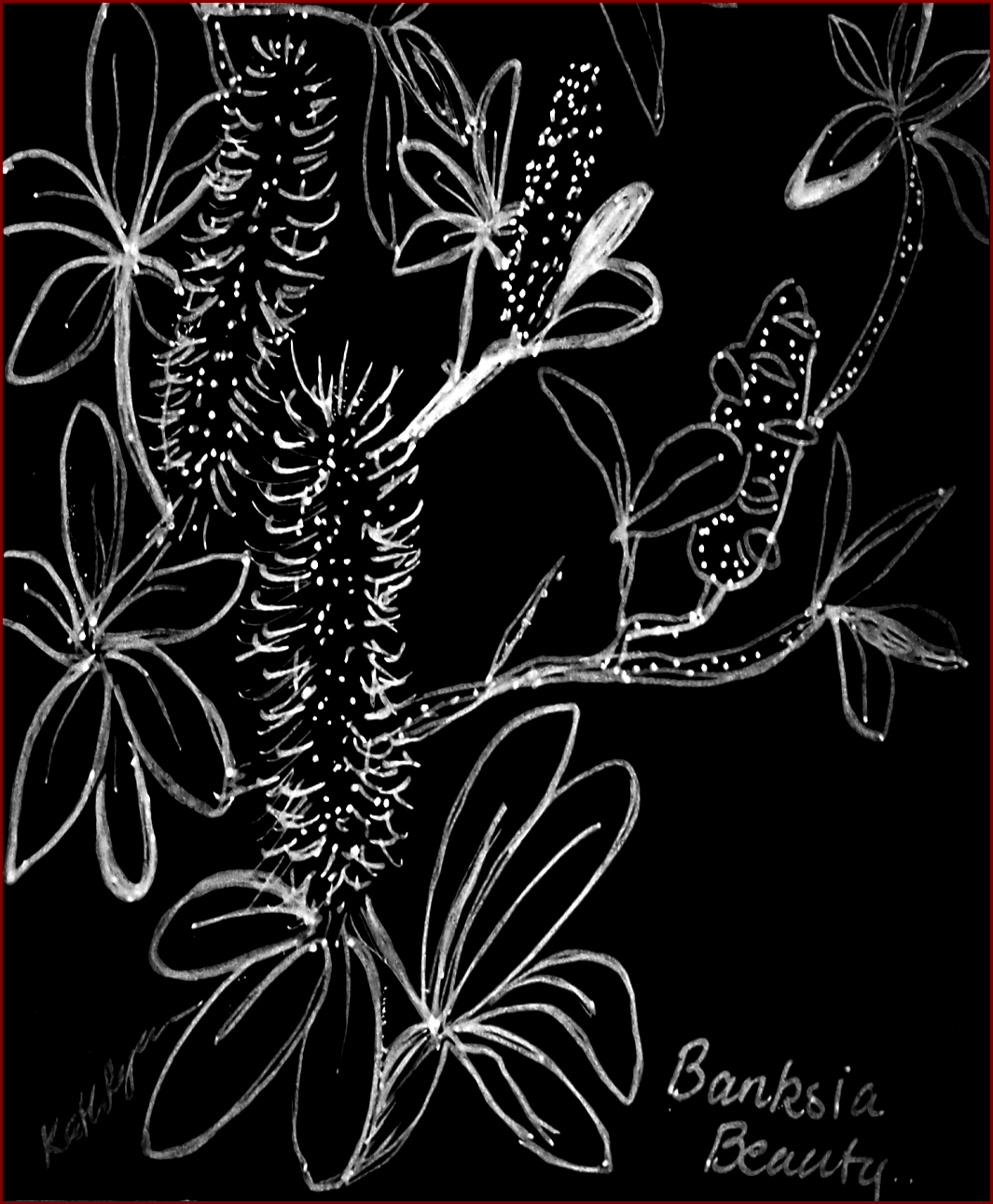 19 'Banksia Beauty' - Kathryn Ryan, White Ink, 20x25cm, Framed, $90