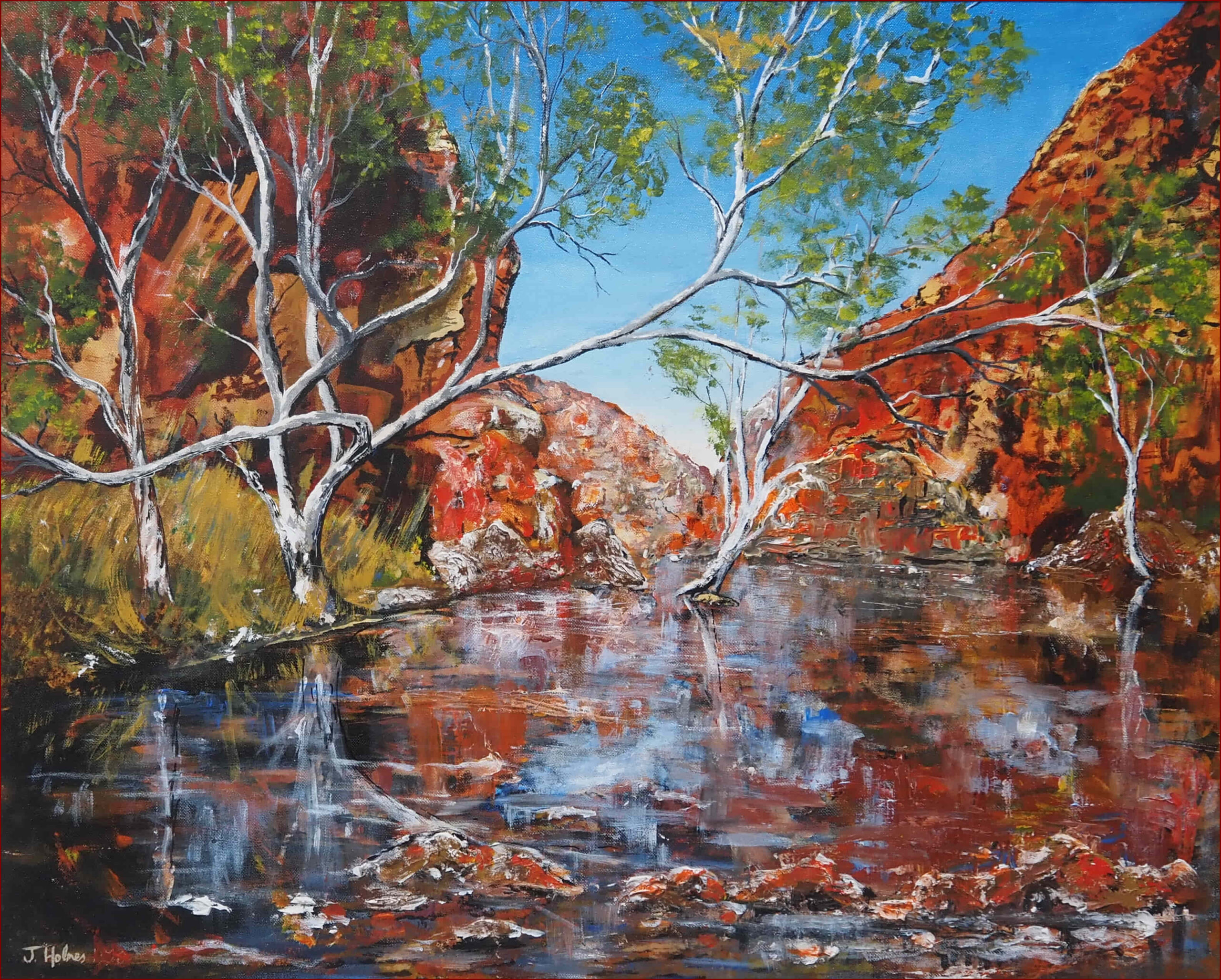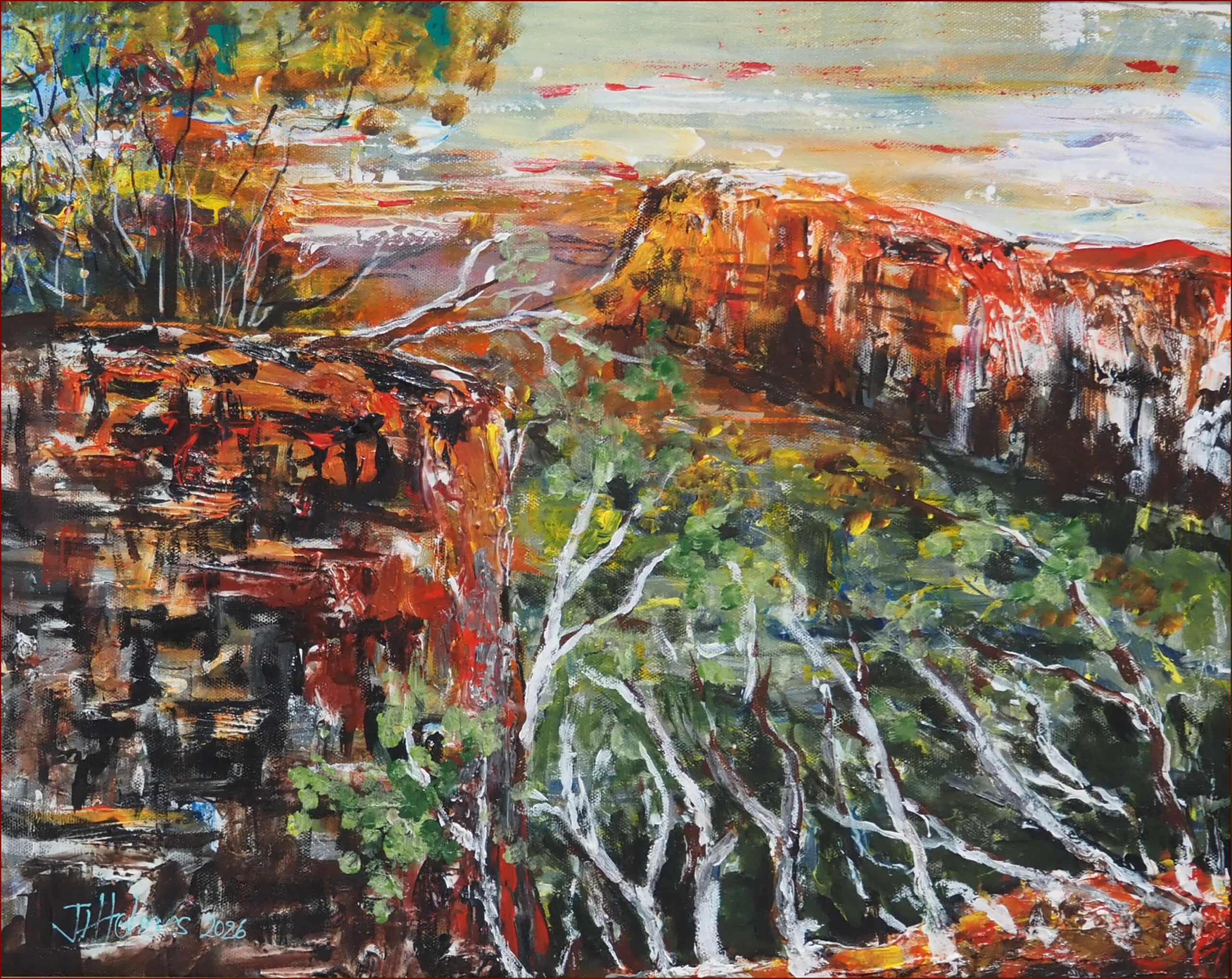 03 'Nitmiluk (Katherine Gorge) #2' - John L Holmes, Acrylic, Canvas Board, 75x60cm, Framed, $300
