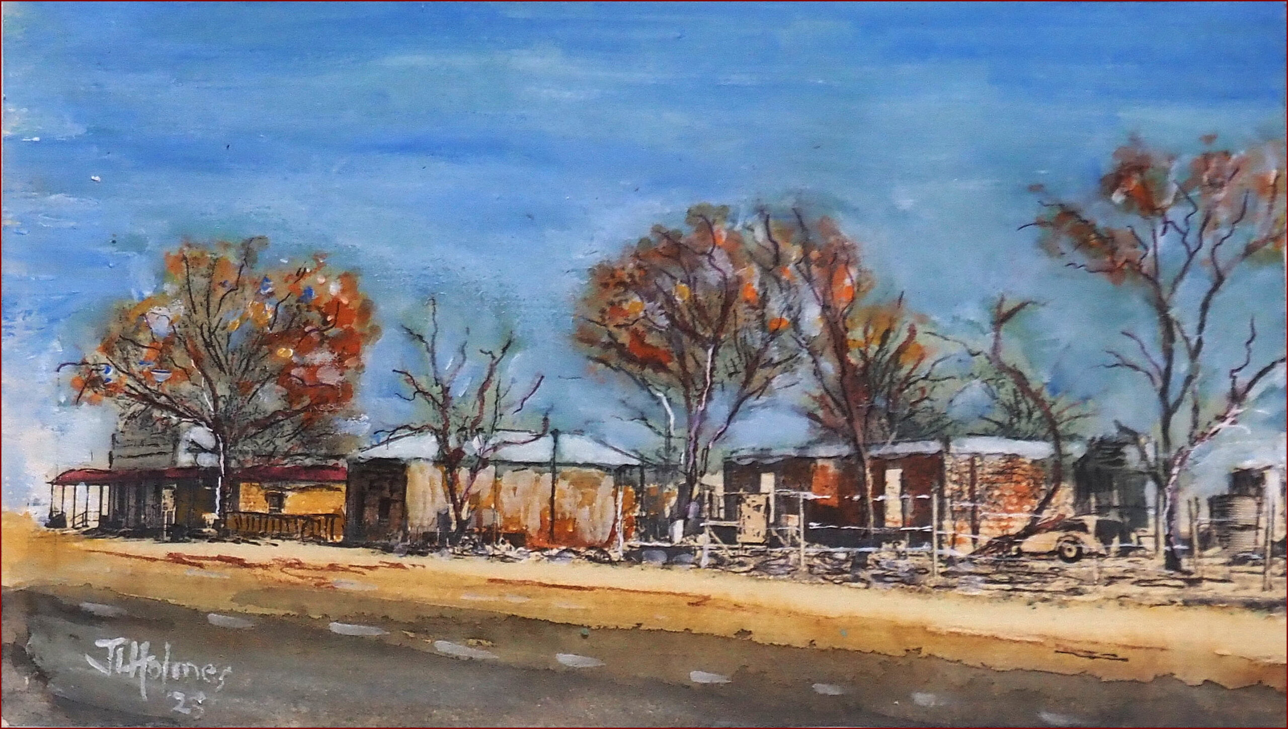 04 'Olary - Barrier Hwy SA' - John L Holmes, Ink & Gouache, Paper, 23x14cm, Framed, $125