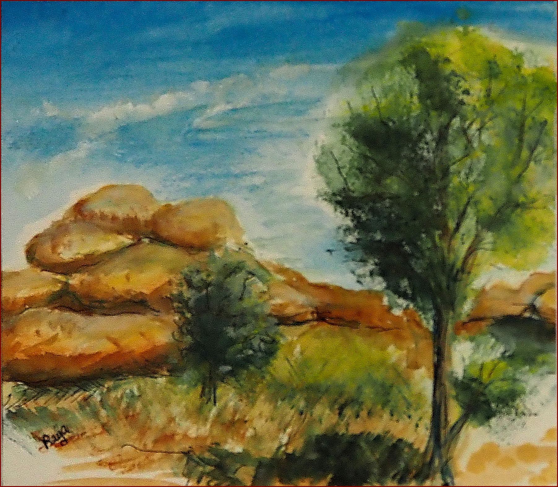 15 'Boulders' - Raija Jantti, Watercolour, 24x19cm, Framed, $80