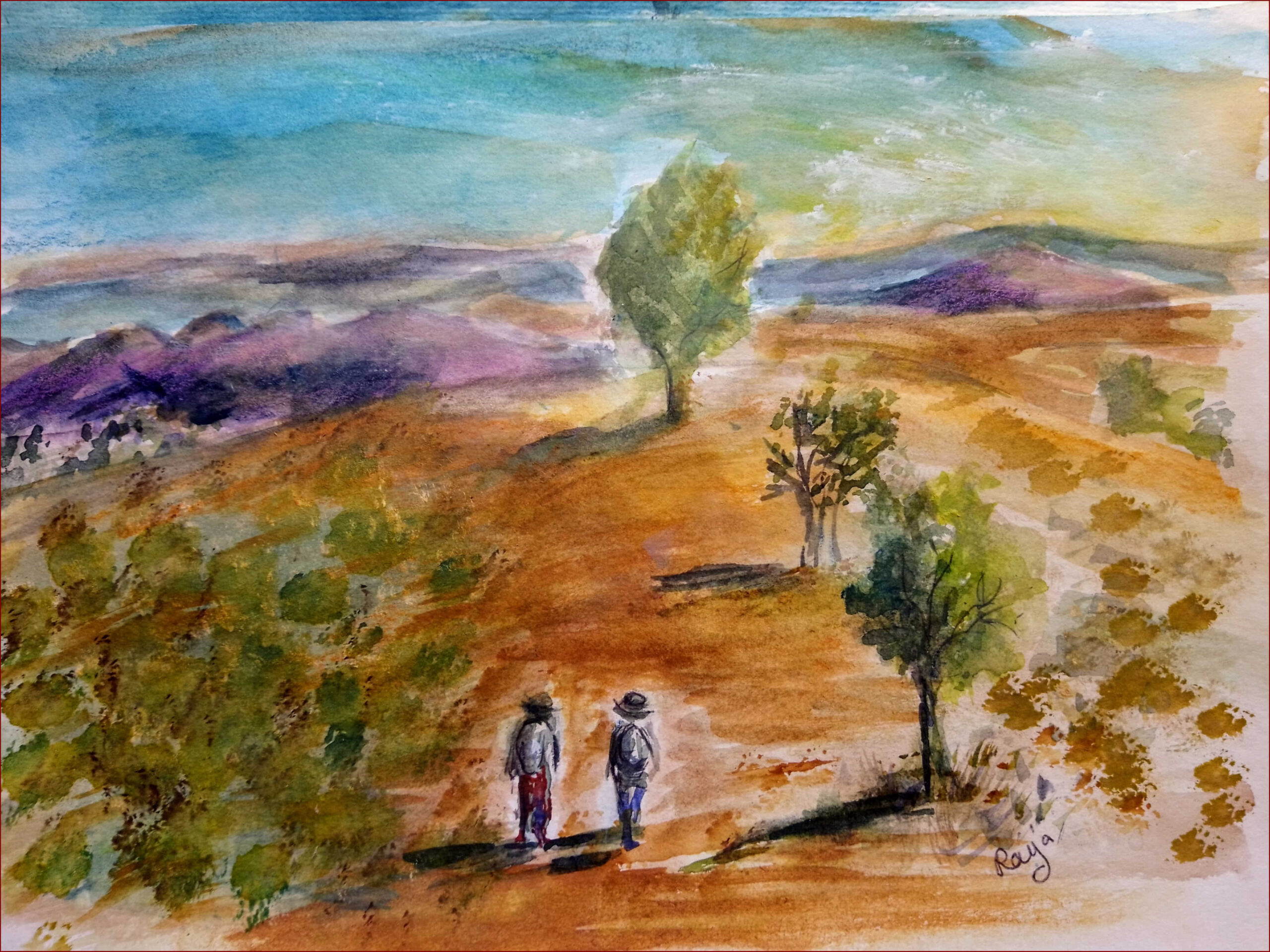16 'Outback Walk' - Raija Jantti, Watercolour, 24x19cm, Framed, $80