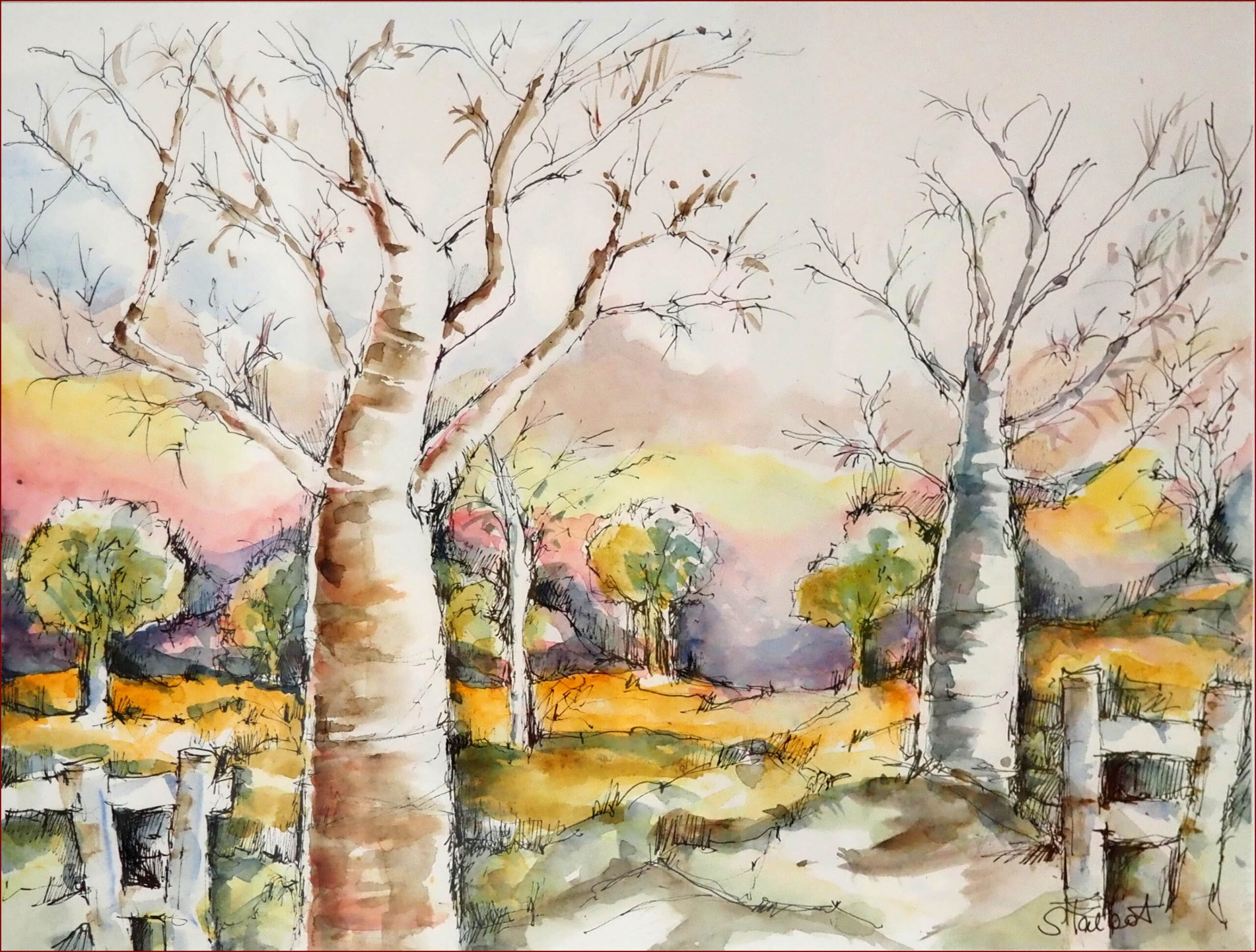 18 'Boag Trees - Kimberleys' - Sharyn Talbot, Ink & Watercolour, 36x26cm, Framed, $325