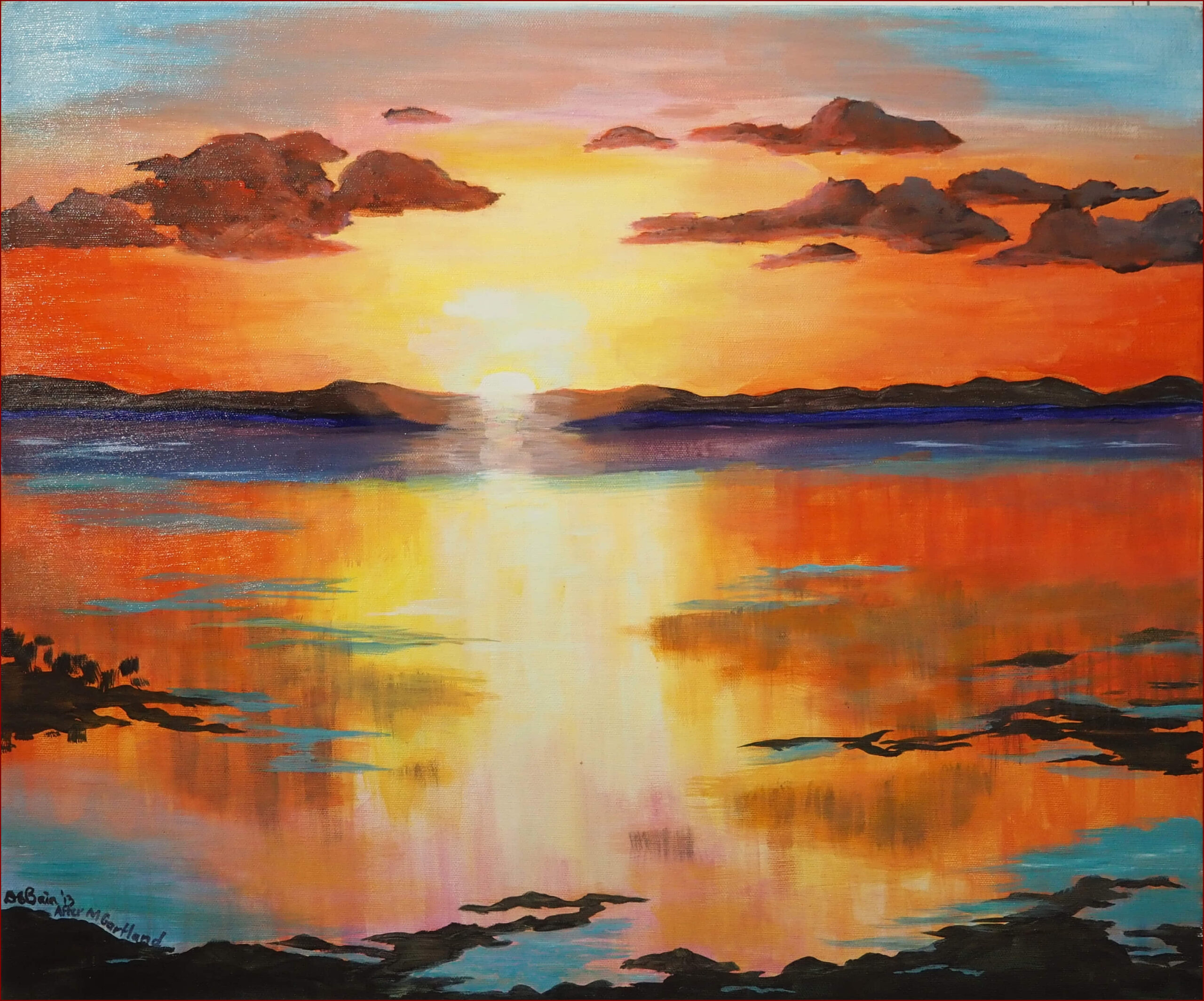 23 'Sunset Reflected' - Danielle Bain, Acrylic, Canvas, 61x50cm, Not Framed, $180